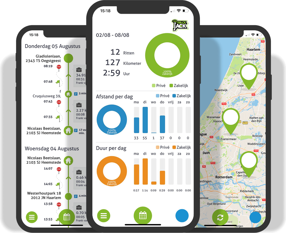 De laatste optie neemt het minste tijd in beslag. Met het GPS kilometerregistratiesysteem van TrackJack worden alle ritten inclusief verplichte fiscale eisen automatisch bijgehouden.”