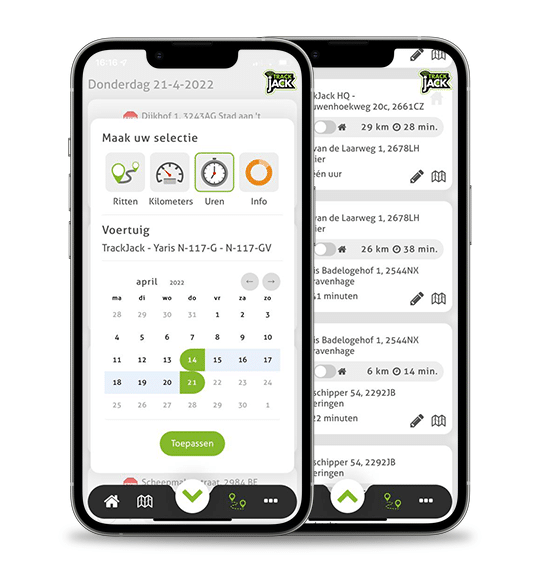 Op iedere locatie met internet heeft u inzicht in de locaties van alle voertuigen en de rittenregistratie ervan. De TrackJack app is gratis te downloaden is geschikt voor  Android en iOS.